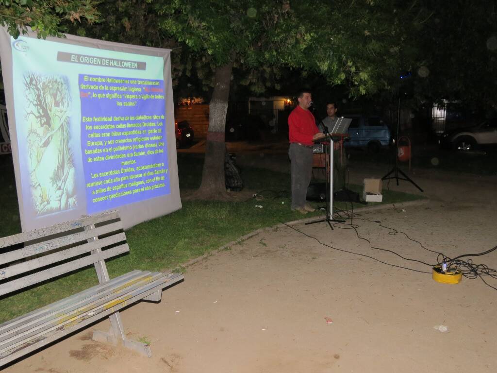 Exposición sobre Halloween, denunciando esta festividad satánica al aire libre. Sábado 31 de octubre.